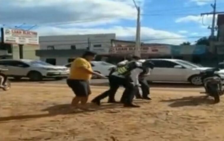 Otros agentes y padres que llevaban a sus hijos a la escuela, intervinieron y lograron sostener al ofuscado conductor, evitando así una posible desgracia. El hecho quedó registrado en imágenes captadas por testigos de la zona.