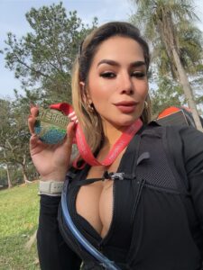 Toda una capa. La cuerona Leidy Cardozo estuvo presente en la carrera de Aviru Trail, que fue realizada en Piribebuy, departamento de Cordillera. Esta competencia de senderismo se hace en varias ocasiones, y la rubiaza logró el objetivo de completar el circuito, donde hasta ligó una medalla.