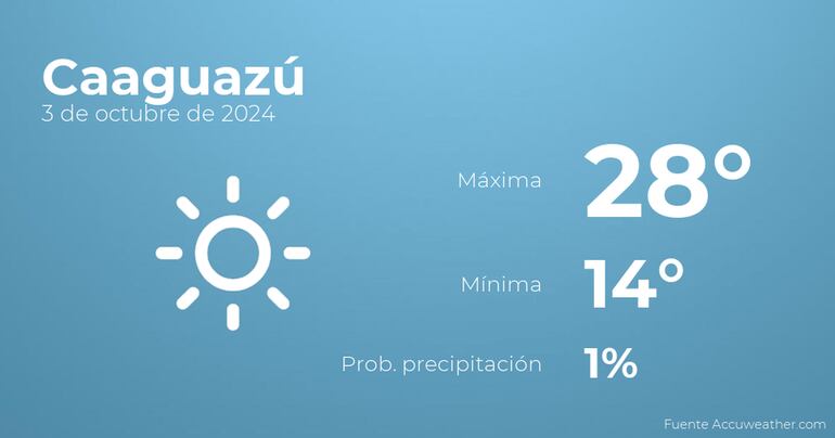 En las primeras horas del día en Caaguazú habrá cielos cubiertos. Según pasen las horas se esperan...