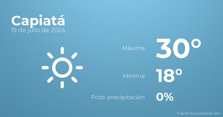 Para las primeras horas del día en Capiatá habrá cielos despejados. A medida que avance el día...