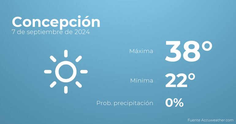 En las primeras horas del día en Concepción se esperan cielos despejados. Por la tarde se prevén...