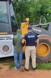 El detenido fue identificado como Jhosemir Lotti Cardate, brasiguayo, quien estaba operando un tractor de la marca John Deere, color amarillo. Los polis…