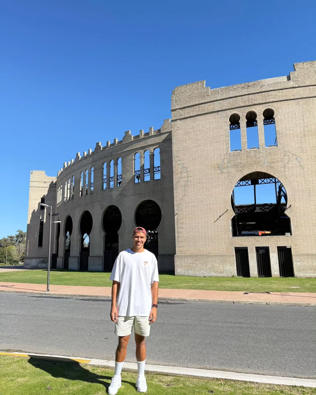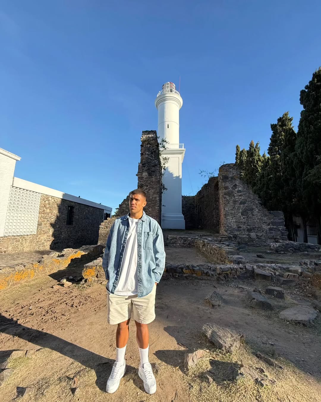El defensor, que es revelación con el fútbol de ashá, se mostró feliz paseándose con su novia, recorriendo el peculiar barrio con calles adoquinadas, con construcciones antiguas y su vista al Río de la Plata.