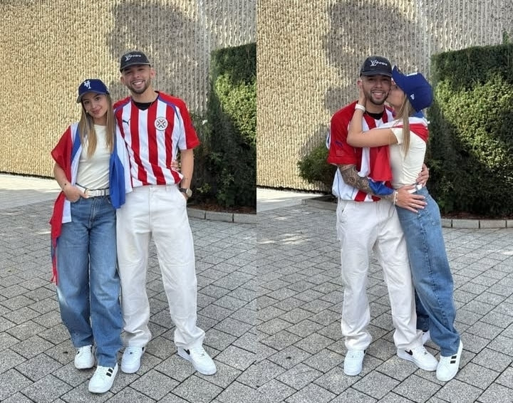 Su doñita, la colombiana Melissa Cardona, compartió en redes fotografías de ambos y de su esposo solito vistiendo la camiseta de la Albirroja, a horas del partido de Paraguay vs Perú, la última de las Eliminatorias rumbo al Mundial 2026.