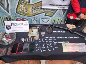 Se trata de Juan Antonio Ferrando López (38), alias “Chupi”, exconvicto, quien fue detenido hógape, que funcionaba como “boca de fumo” sobre la calle Isla Po’i (26 Proyectada) casi Mayor Fleitas, del populoso barrio asunceno.