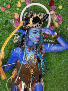 En la ocasión, Jennifer sorprendió a los que estaban presentes con un elaborado disfraz, inspirado en la película taquillera Avatar.