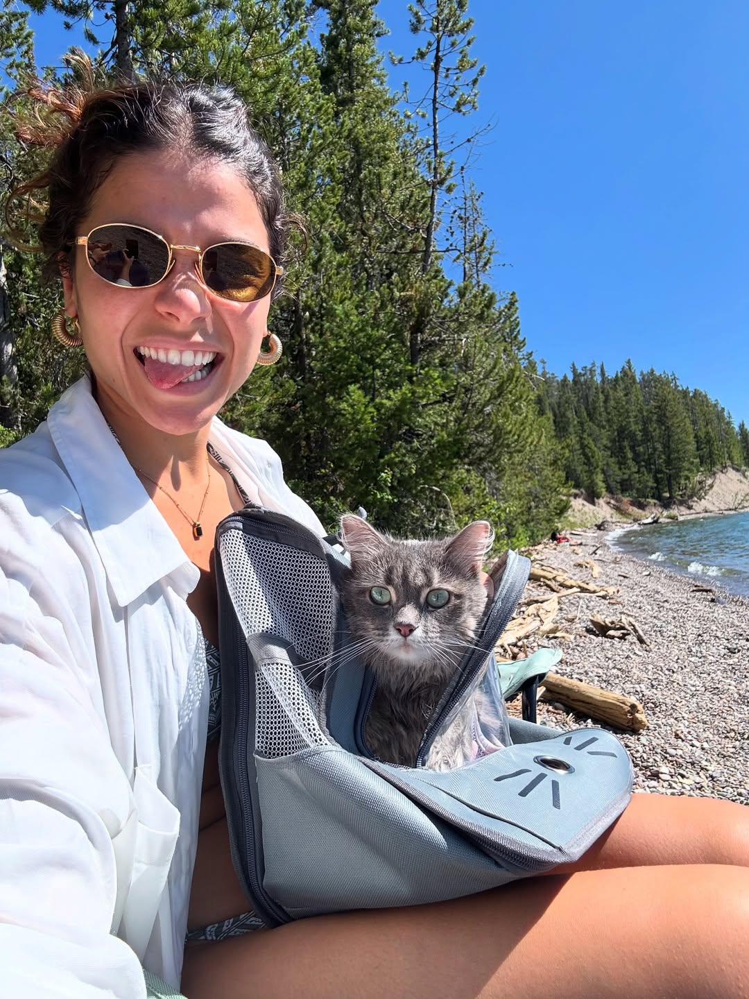 Se fueron a Jackson Lake, en Alabama, a disfrutar del agua y de la naturaleza. Su gatita, bien protegida en su bolsito, se ve que disfrutaba de su paseíto y hasta de entrar el agua.