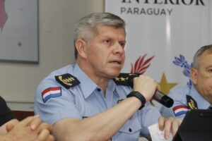 El ministro del Interior Enrique Riera Escudero, encabezó la conferencia de prensa sobre los resultados de la Operación Alfa, desarrollada en el marco de la cooperación internacional contra el narcotráfico transnacional, entre la Policía de Paraguay y Colombia.