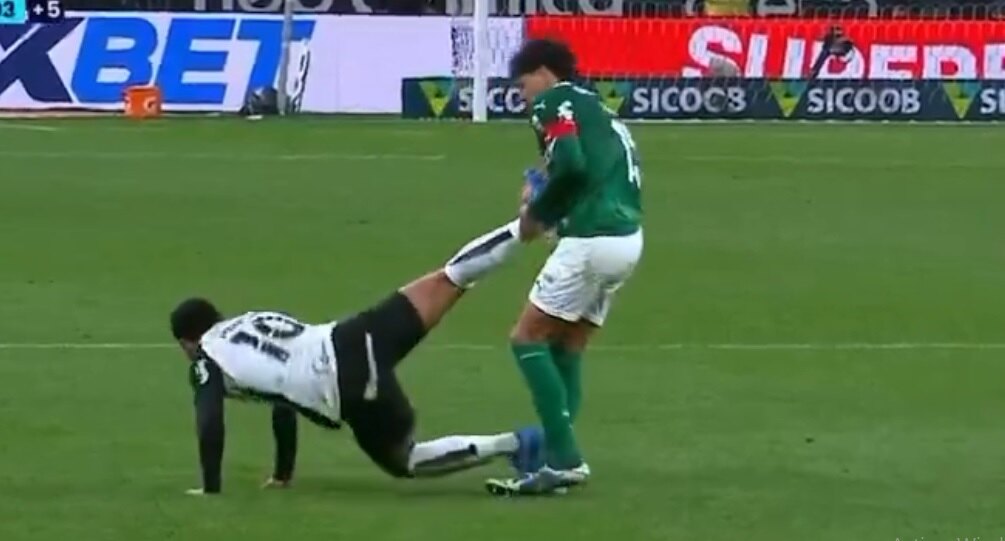 El zaguero del Palmeiras y el atacante del Corinthians protagonizaron una de las jugadas puntuales del clásico paulista, disputado anoche en el Neo Química Arena por la vigésima segunda fecha del Brasileirao.