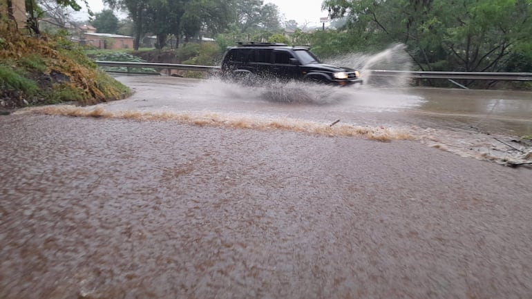 La avenida Mariscal López está repleta de baches y charcos formados por malolientes aguas servidas en la...