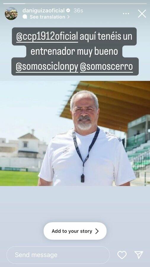 “Club Cerro Porteño, aquí teneis un entrenador muy bueno” tecleó Guiza, compartiendo el posteo a otras páginas sobre el club.