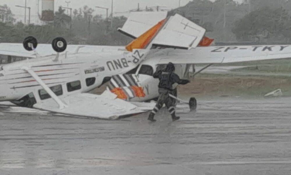 Anthony Páez publicó en X que que incluso aeronaves en el aeropuerto Silvio Pettirossi fueron tumbados por el tiempo vai. Otra katu fue arrastrada al costado de un hangar.